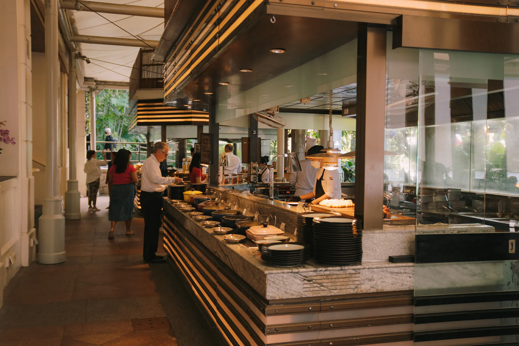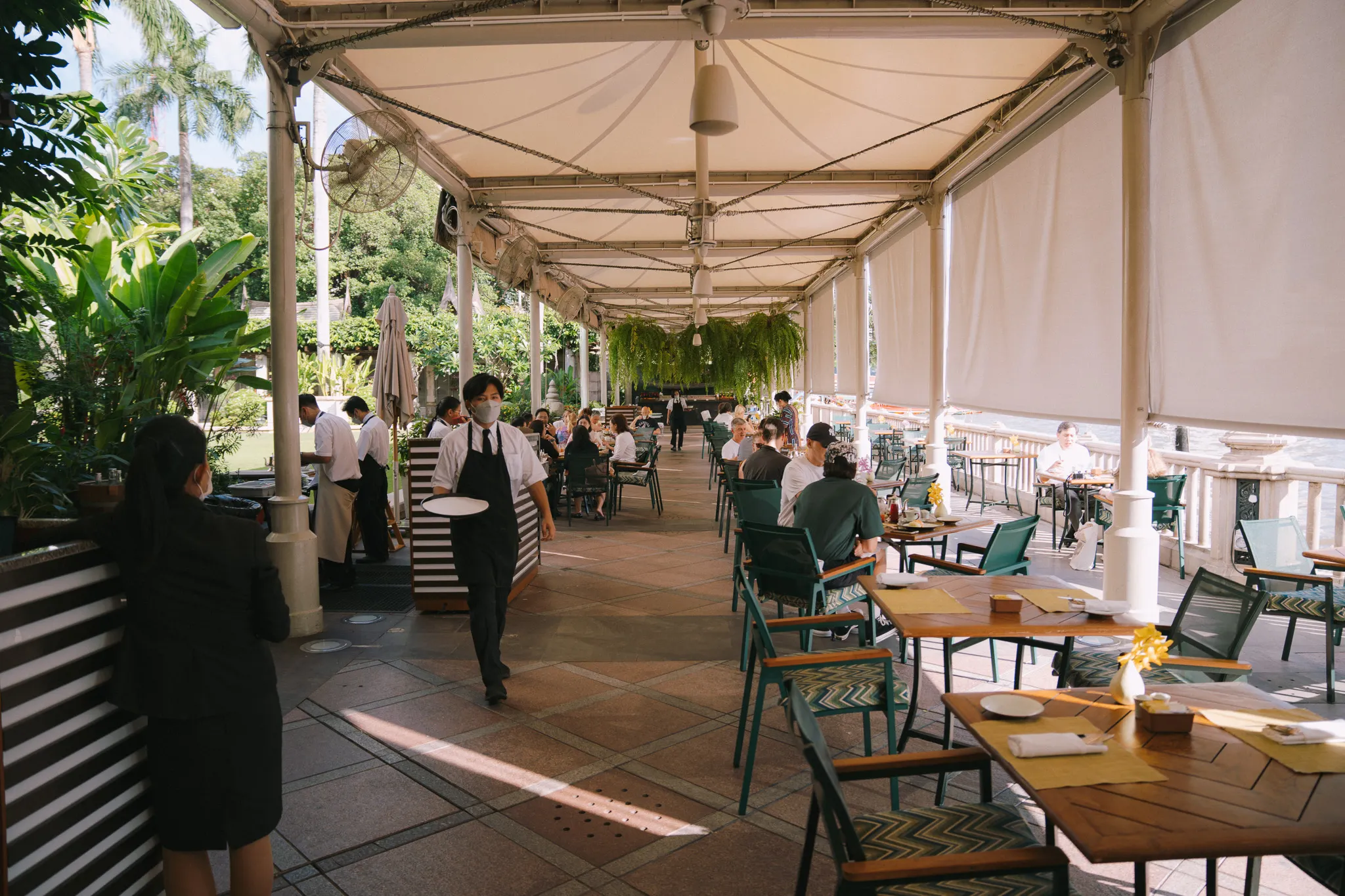 아래로 선착장과 조식 먹는 곳이 보인다.