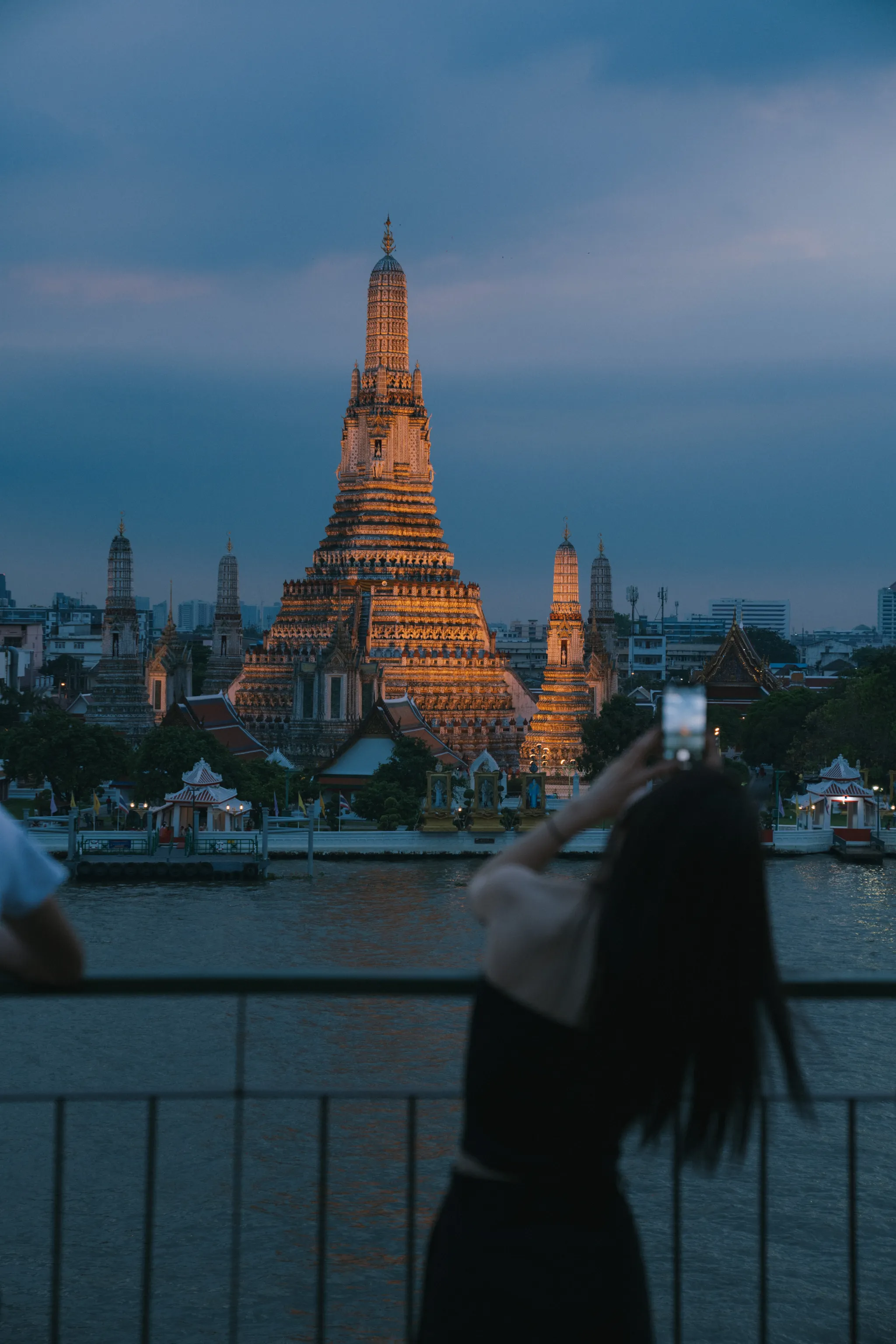 왓아룬 야간 조명은 오후 6시 30분에 켜진다고 들었는데, 이 날은 6시쯤 켜졌던 것 같다. 조명이 켜지면 관광객들이 하나 둘 모여들어서 사진을 찍고 찍어준다. 근데, 여기 직원이 제일 잘 찍어주니까 그냥 직원한테 찍어달라고 하자.